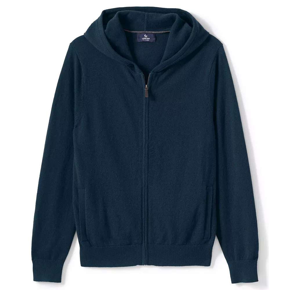 This men’s Lands’ End cashmere hoodie is loaded with supreme comfort and style.